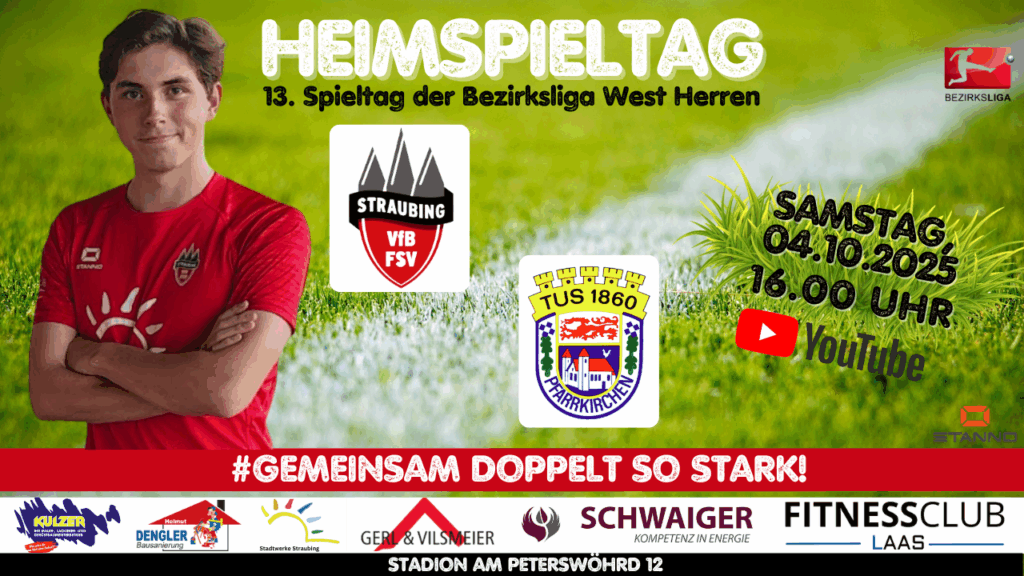 Am Samstag um 16 Uhr steht für den FSV VfB Straubing ein richtungsweisendes Heimspiel auf dem Programm. Gegner im Stadion am Peterswöhrd ist der TuS 1860 Pfarrkirchen, der aktuell auf einem Abstiegsrelegationsplatz steht. Nach der 1:3-Heimniederlage zuletzt gegen den FC Ergolding möchte die junge Straubinger Mannschaft sofort wieder in die Spur finden und die zuletzt gestartete Erfolgsserie neu entfachen.