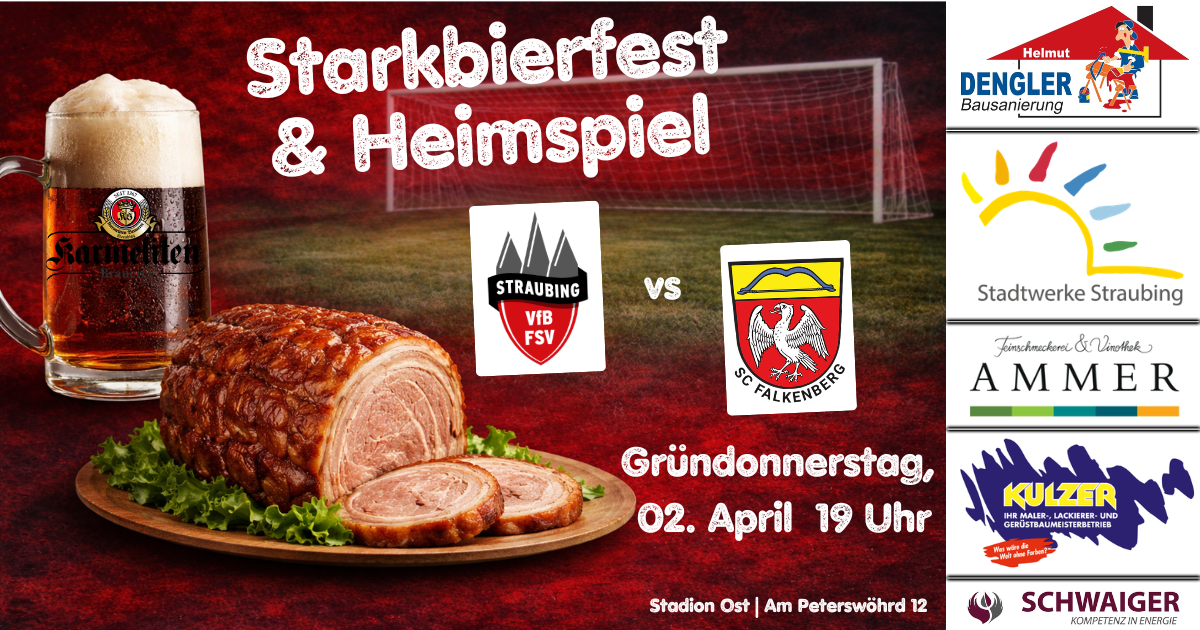 Am Gründonnerstag, den 02. April 2026, um 19:00 Uhr empfängt der FSV VfB Straubing den SC Falkenberg zum nächsten wichtigen Heimspiel. Die Gäste reisen als Tabellenzwölfter an – und haben bereits im Vorfeld angekündigt, mit mehr als 50 Fans anzureisen und für ordentlich Stimmung zu sorgen.